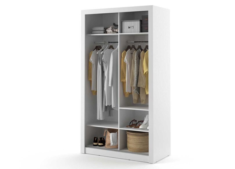 Donnez un coup de jeune à votre garde-robe avec cette armoire élégante et moderne à portes coulissantes ! Cette armoire a une largeur de 120 cm et est équipée de 2 portes coulissantes, ce qui la rend parfaite pour toute chambre à coucher. L'armoire comporte une porte avec un miroir et est disponible en 4 couleurs élégantes. Pour plus de commodité, elle est également livrée avec 2 tringles et 5 étagères pour une organisation et un rangement facile.