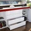 Ce buffet laqué au design épuré sans poignées offre beaucoup d'espace de rangement. Les 4 tiroirs vous permettront de ranger vos accessoires du quotidien et les objets tels que la vaisselle et les verres seront convenablement rangés derrière les 2 portes. Vous choisirez la couleur des façades selon notre palette de 9 couleurs afin d'accorder ce beau buffet à votre décoration d'intérieur.