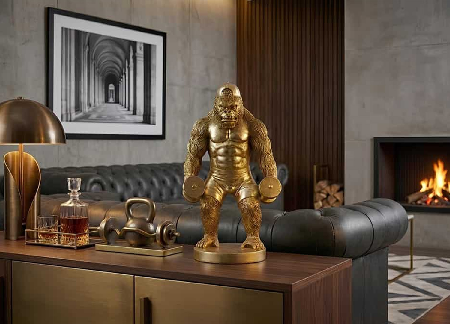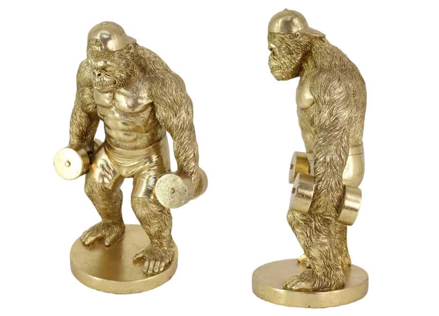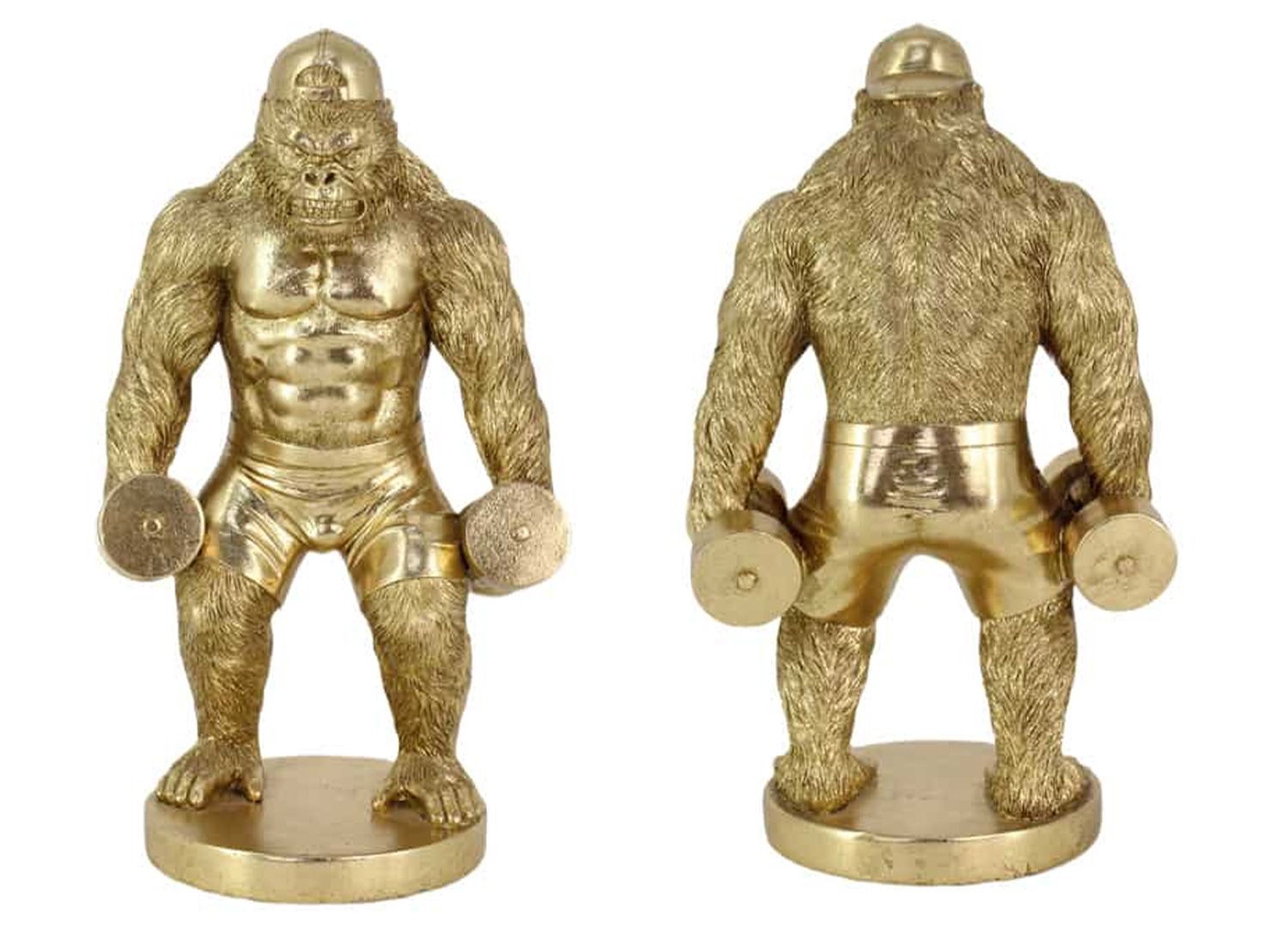 Nous sommes prêts à faire entrer une dose d’audace dans votre intérieur avec cette statuette gorille dorée. Plus qu’un simple objet déco, elle impose une vraie présence avec son allure de gorille athlétique, ses haltères dans les mains et son attitude presque souveraine. À la fois décalée, puissante et résolument décorative, elle transforme instantanément une console, une étagère ou une table basse en mise en scène affirmée.