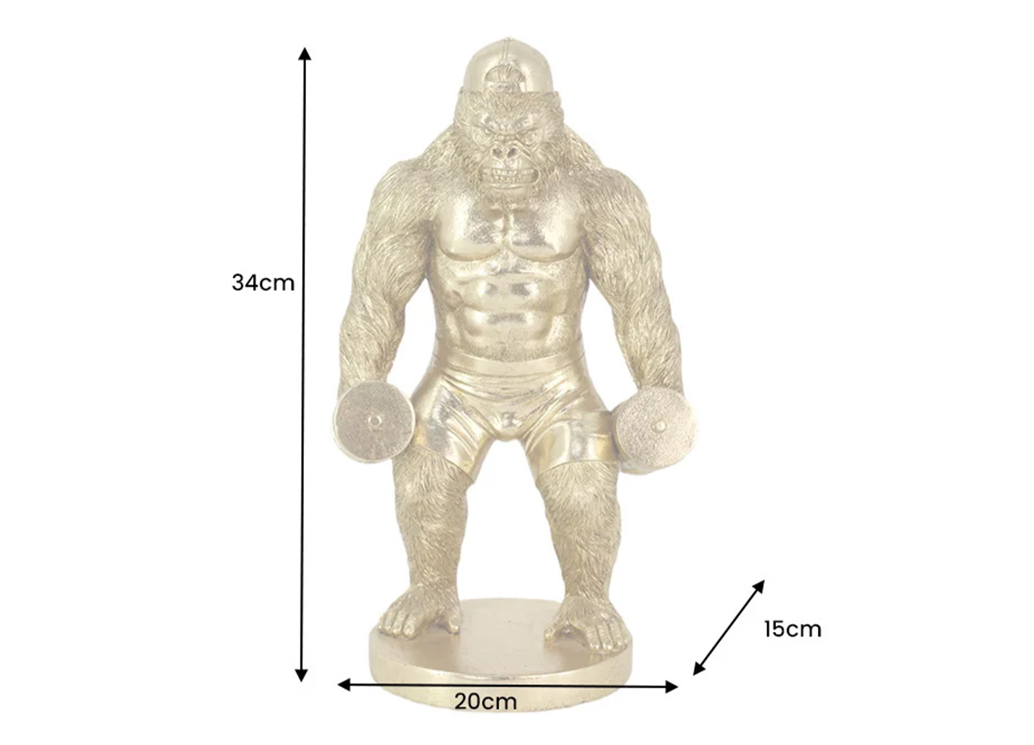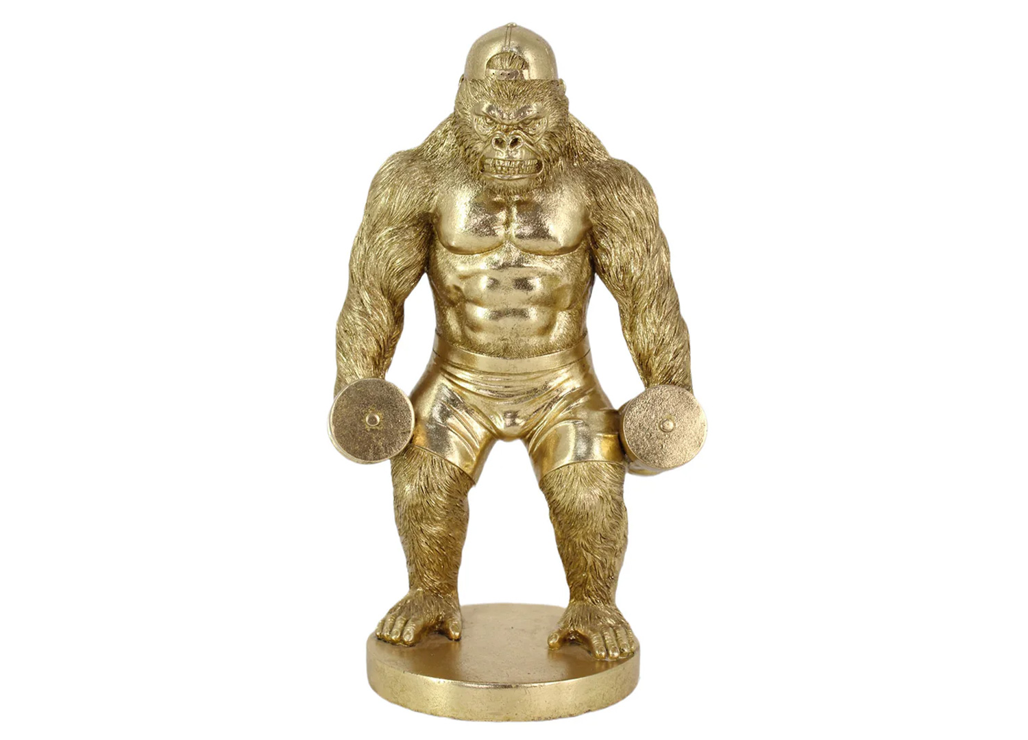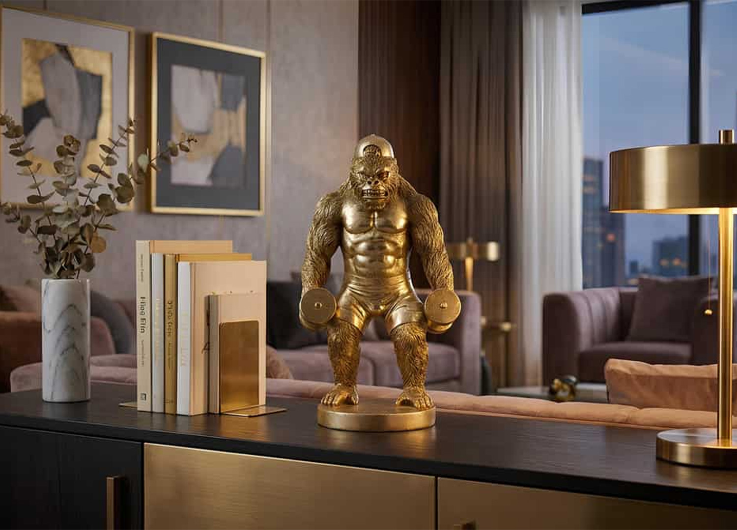 Nous sommes prêts à faire entrer une dose d’audace dans votre intérieur avec cette statuette gorille dorée. Plus qu’un simple objet déco, elle impose une vraie présence avec son allure de gorille athlétique, ses haltères dans les mains et son attitude presque souveraine. À la fois décalée, puissante et résolument décorative, elle transforme instantanément une console, une étagère ou une table basse en mise en scène affirmée.