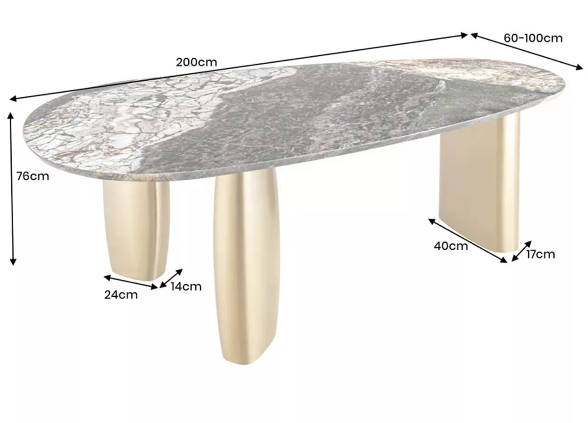 Table à manger 200 cm ovale doré et aspect marbre