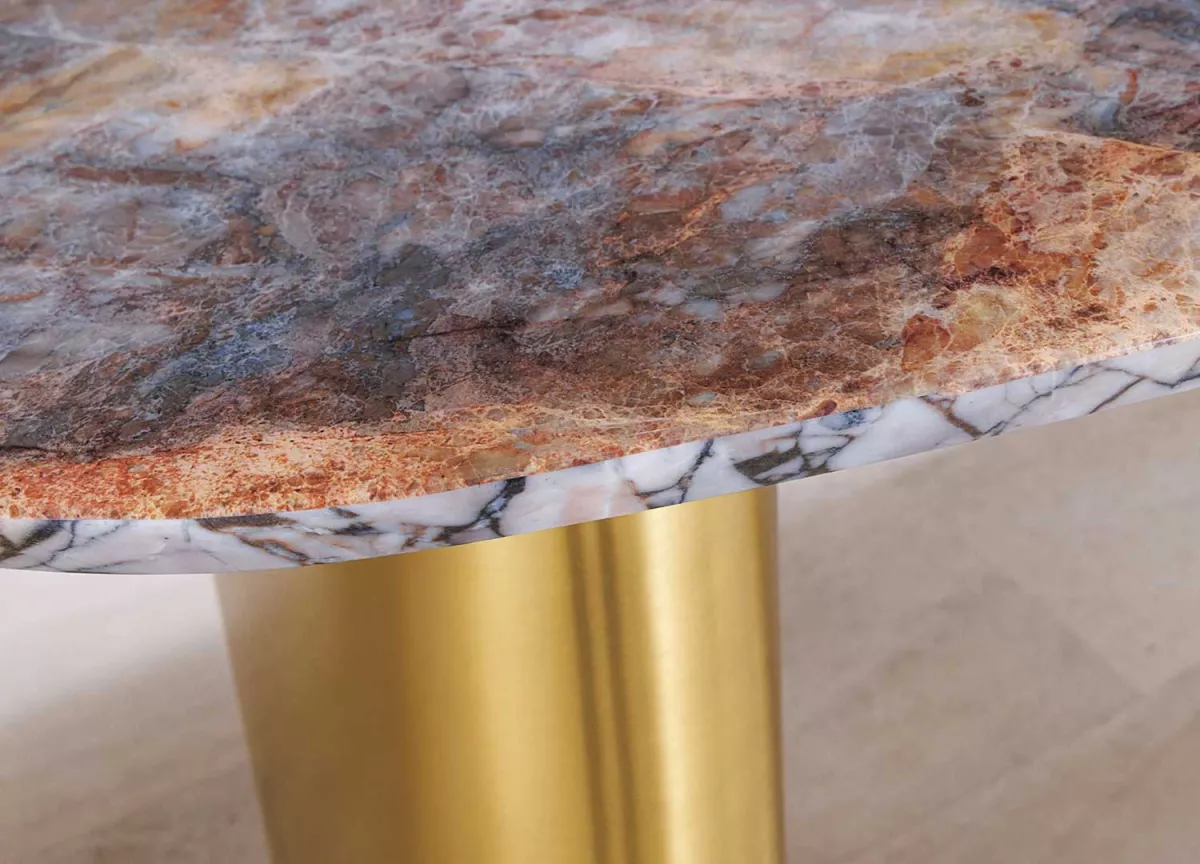 Table de repas ovale doré et marbré