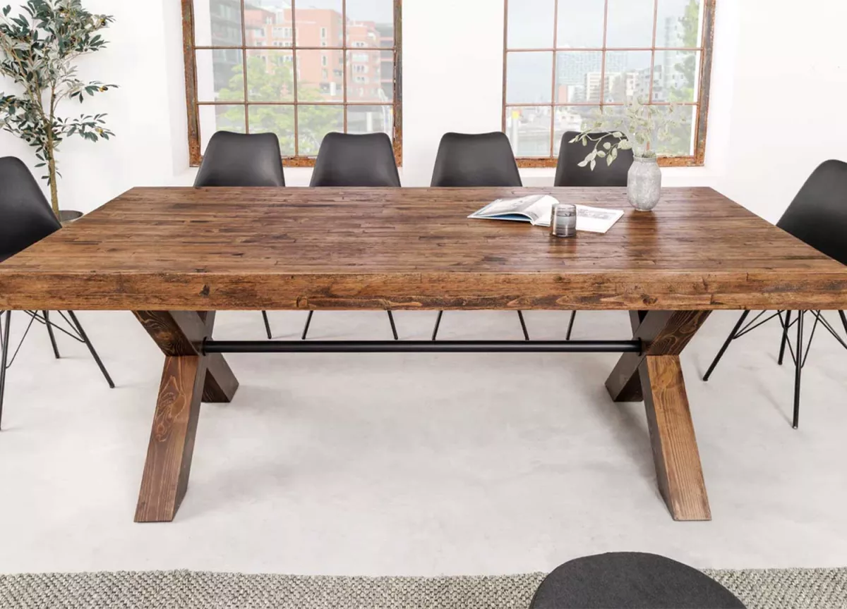 Table à manger bois de pin teinté 210 cm