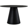La table de repas ronde que je vais vous décrire est un véritable joyau de design et de convivialité. Avec un diamètre de 120 cm, elle offre un espace généreux pour accueillir confortablement jusqu'à six personnes, faisant d'elle un choix idéal pour les repas en famille ou entre amis. Ce qui frappe d'abord, c'est son piétement conique, une véritable prouesse d'équilibre et de stabilité. La table est disponible en deux finitions, chacune aussi séduisante que l'autre. La première est en bois aspect chêne naturel. Cette finition, avec ses nuances chaudes et ses veines apparentes, apporte une touche d'authenticité et de chaleur à votre intérieur. Elle s'intègrera parfaitement dans un décor contemporain ou plus traditionnel. La seconde finition proposée est en bois aspect chêne noir. Plus moderne et audacieuse, cette version apporte une note d'élégance à votre espace repas. Le noir profond du bois, sublimé par une finition soignée, contraste avec la luminosité de la pièce.