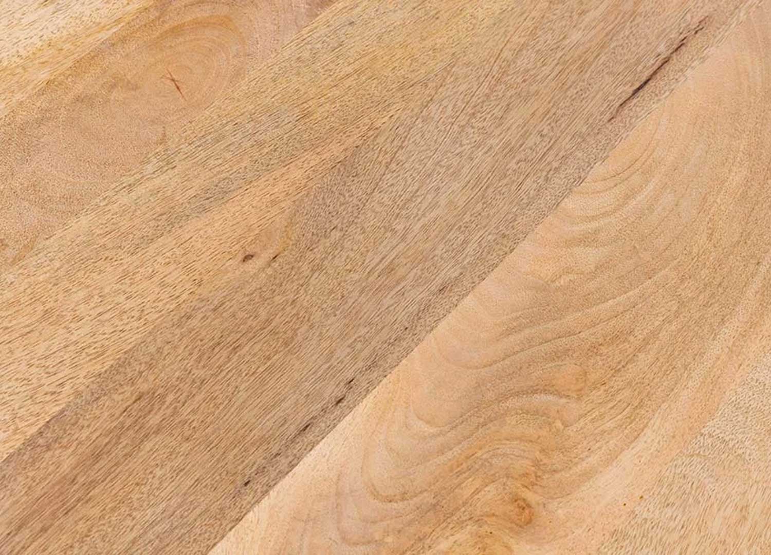 Retrouvé dans les pays de l’équateur, le bois de manguier est un bois tropical qui trouve de plus en plus sa place au sein des foyers. Particulier pour son grain vif qui rend la surface du bois particulièrement vivante, il peut laisser apparaître des nœuds, des fissures, ou encore des variations de couleurs et de dimensions attribuant aux meubles un caractère unique et précieux. Ces facteurs ne constituent pas un motif de plainte.