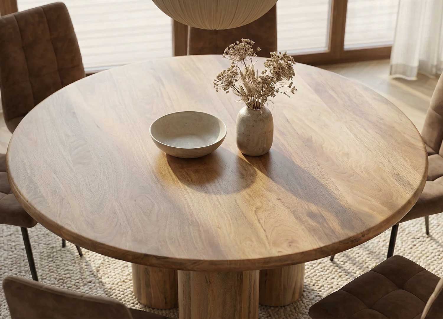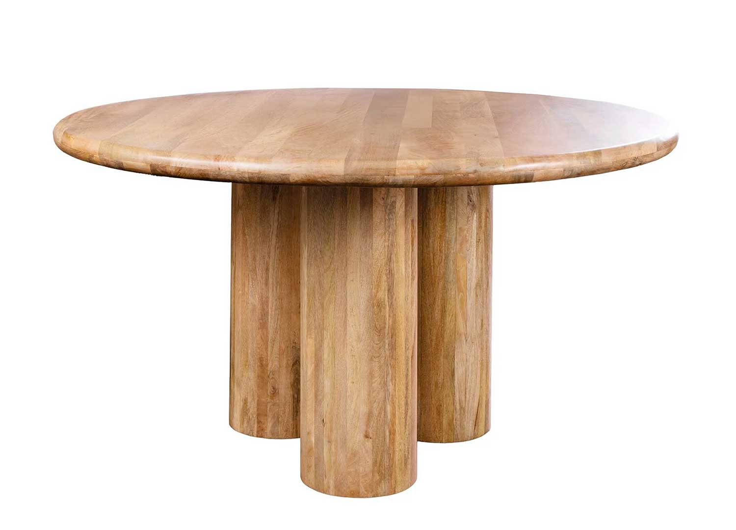 Table à manger ronde 140 cm en manguier massif naturel à piédestal illusion