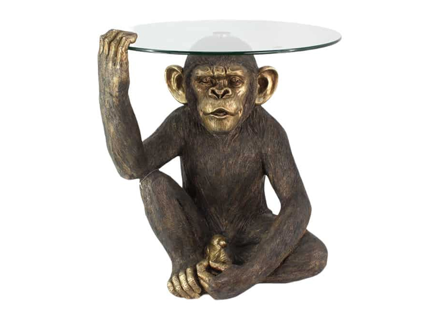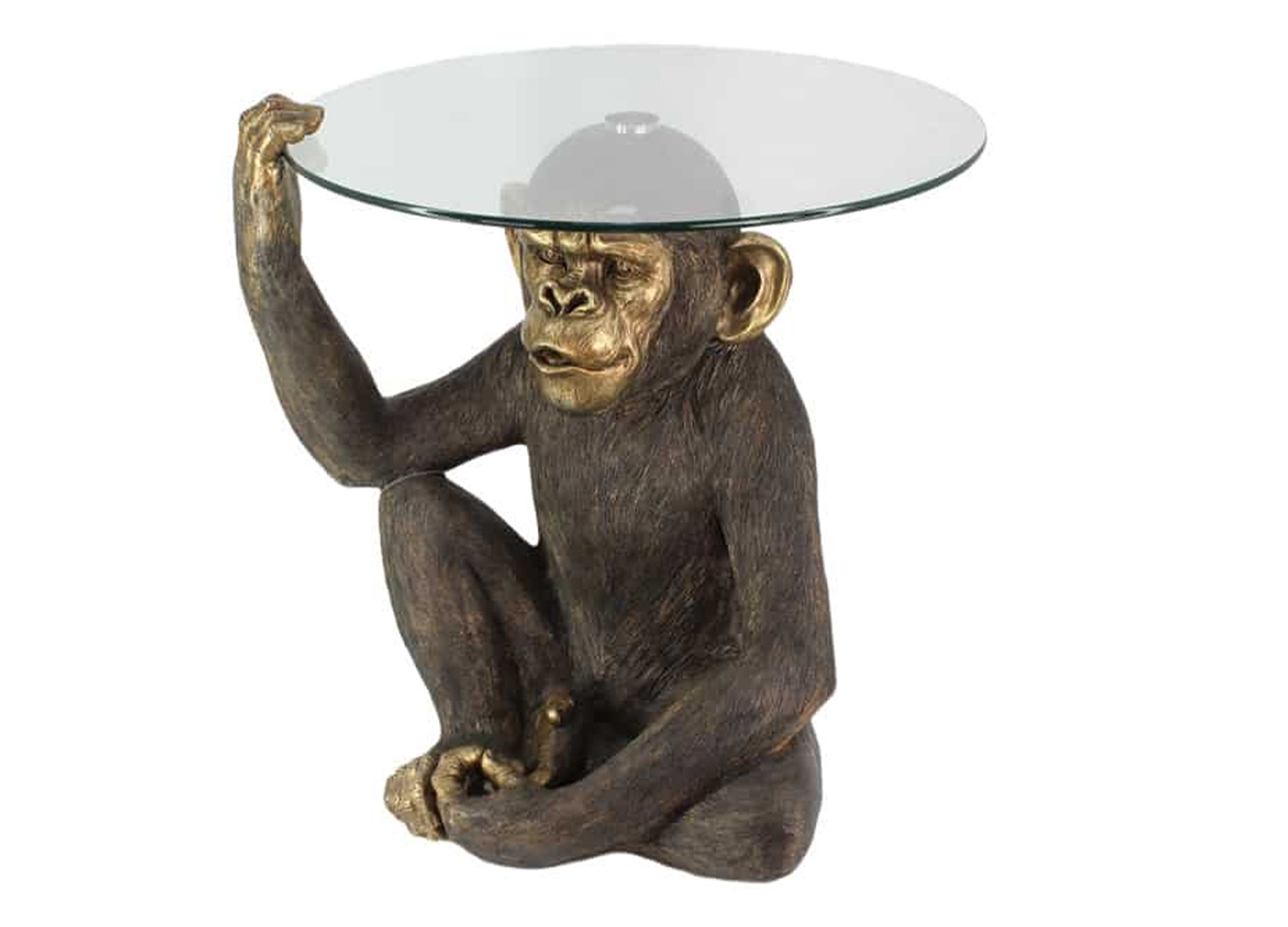 Table basse singe noir et doré avec plateau en verre rond 62 cm