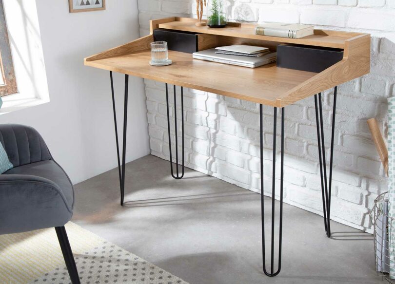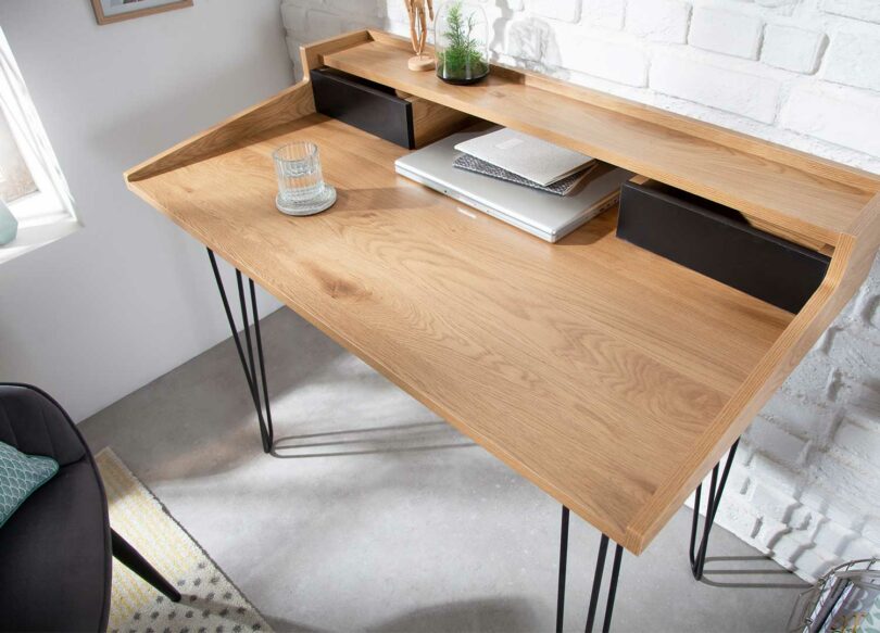 Bureau en bois massif avec tiroirs de rangement style scandinave