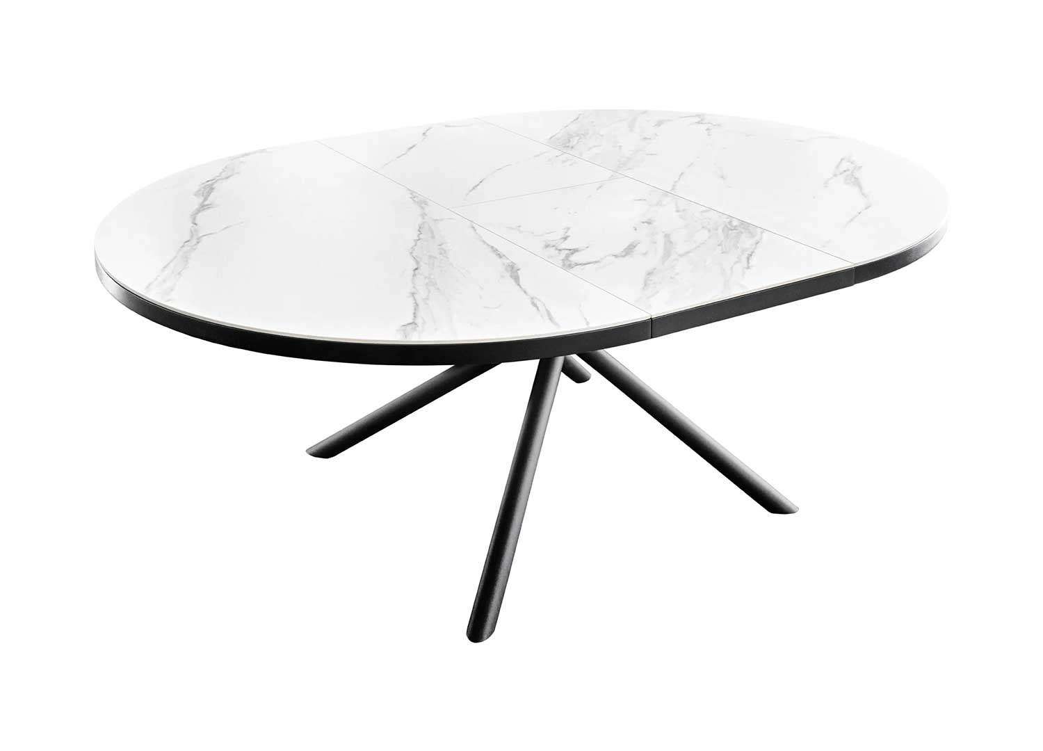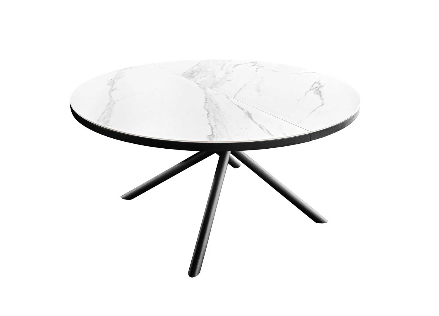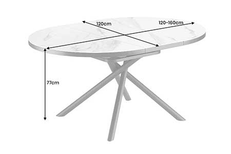 Table de repas ronde extensible céramique effet marbre blanc 120-160 cm