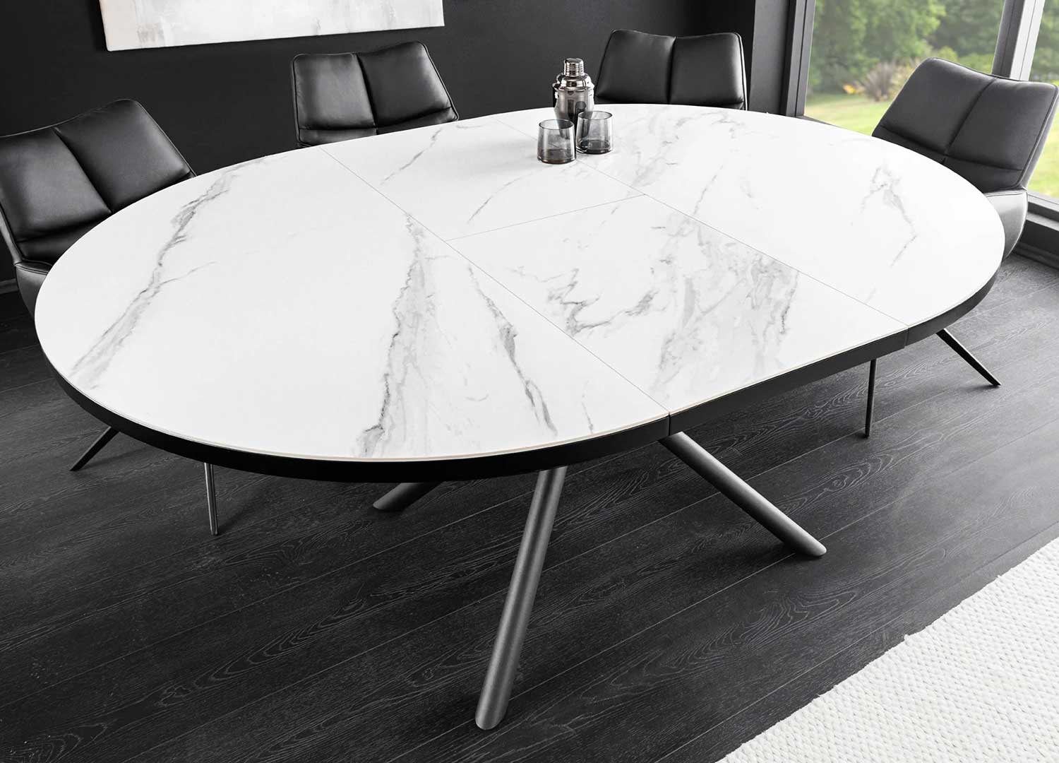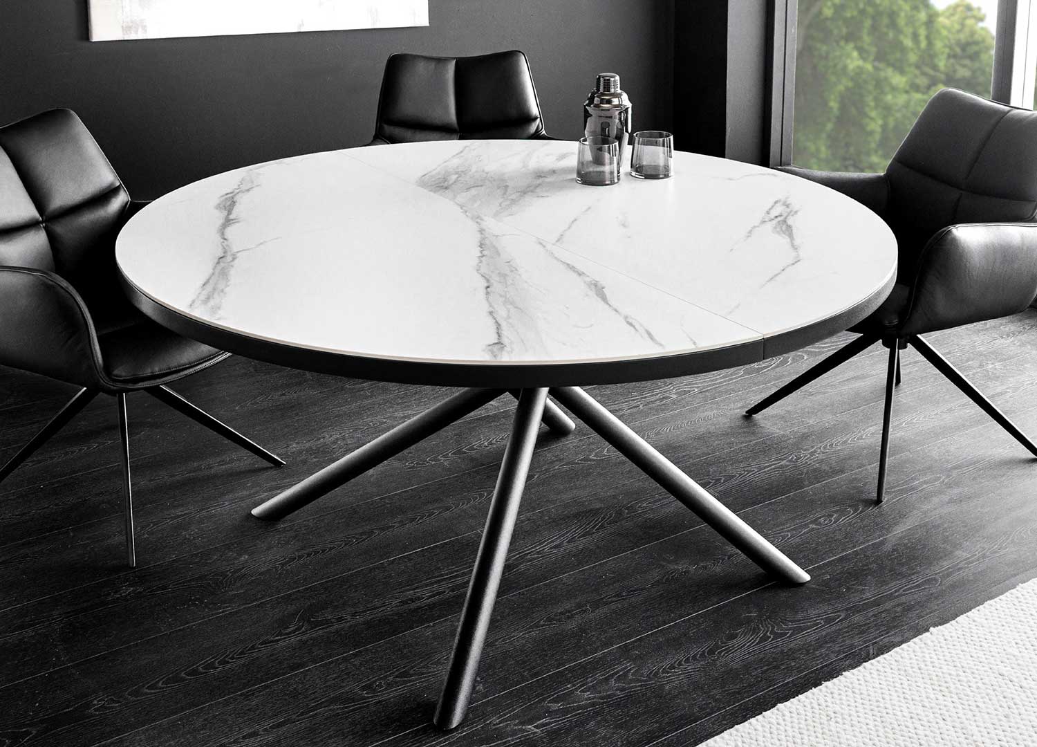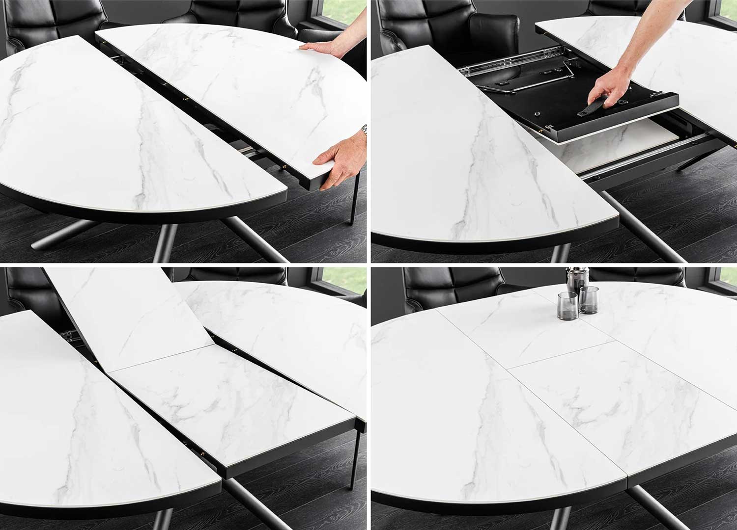 Table ronde avec allonge céramique blanche
