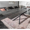 Une table repas en céramique avec 1 rallonge à chaque bout de table pour passer de 180 cm de longueur à 220 ou 260 cm. Cette table de repas en céramique respire le design. Avec ses deux allonges de chaque côté, cette table à manger vous permettra de retrouver plus de 10 convives à table. Le plateau gris noir effet lave ainsi que le pied laqué noir rehausseront son design. Achetez cette table de repas pour une salle à manger pratique et décorez votre intérieur dans un look rétro moderne.
